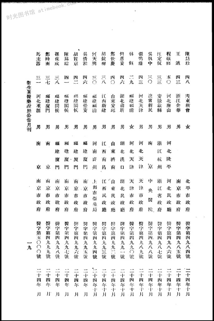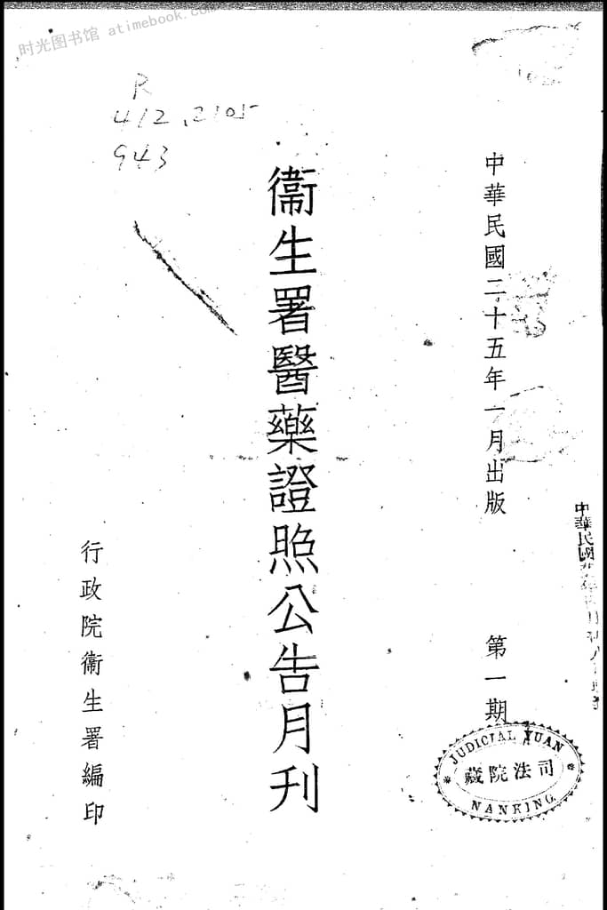 网盘路径:/时光图书馆珍藏系列/书籍文件/老杂志、老期刊/民国期刊/南京/《卫生署医药证照公告月刊》(南京)1936-1937年合集.db