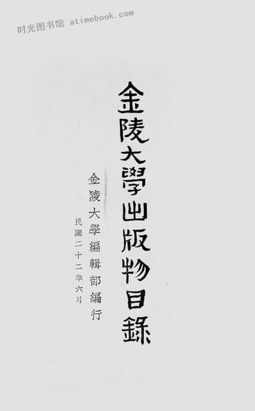 | 网盘路径:/时光图书馆珍藏系列/书籍文件/老图书/《金陵大学出版物目录》电子版合集.db | ||