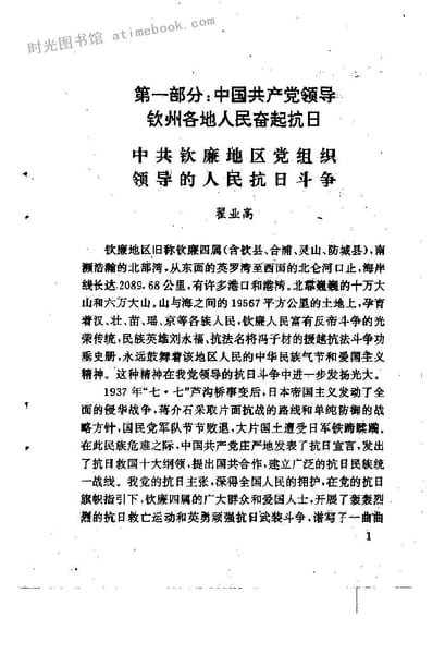 | 网盘路径:/时光图书馆珍藏系列/书籍文件/老图书/《钦州文史_第1辑_(_钦州军民抗日斗争史料专辑)》电子版合集.db | ||