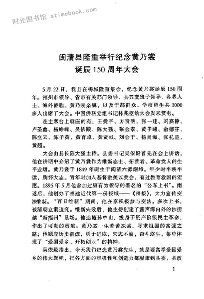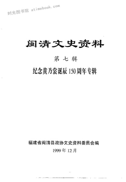 | 网盘路径:/时光图书馆珍藏系列/书籍文件/老图书/《闽清文史资料_第7辑_纪念黄乃裳诞辰150周年专辑》电子版合集.db | ||