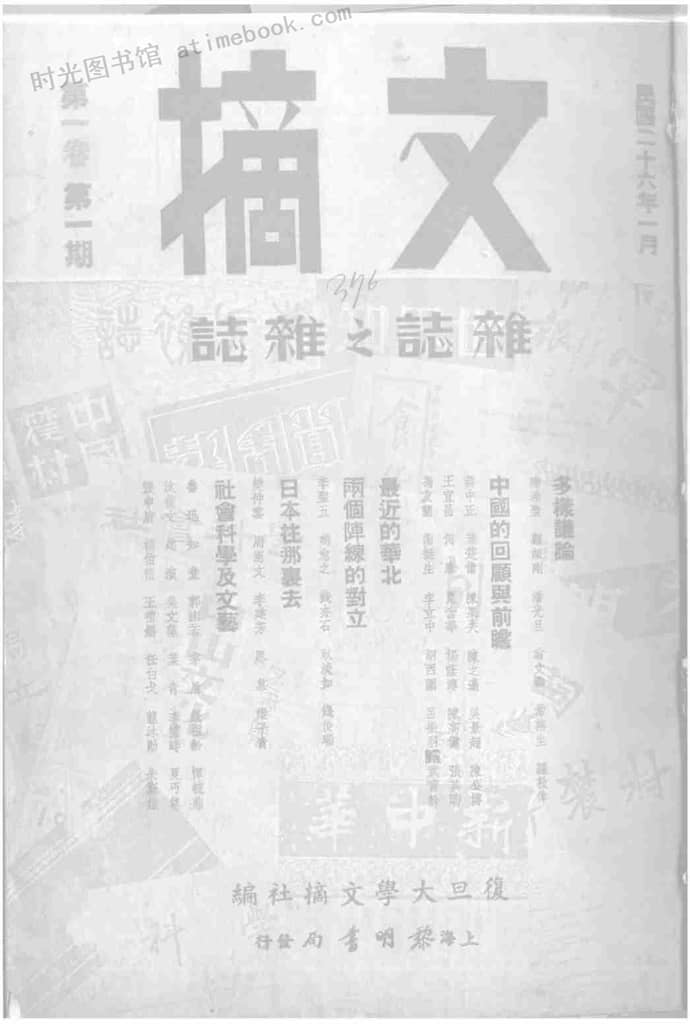 网盘路径:/时光图书馆珍藏系列/书籍文件/老杂志、老期刊/民国期刊/上海/《文摘》(上海)1937-1948年合集.db