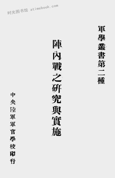 | 网盘路径:/时光图书馆珍藏系列/书籍文件/老图书/《阵内战之研究与实施》电子版合集.db | ||