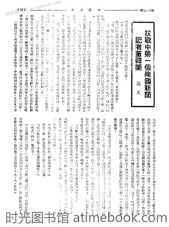 网盘路径:/时光图书馆珍藏系列/书籍文件/老杂志、老期刊/民国期刊/湖北/《新闻记者》(汉口)1938-1940年合集.db