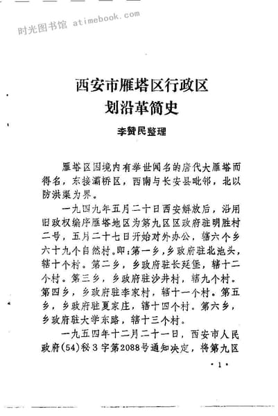 | 网盘路径:/时光图书馆珍藏系列/书籍文件/老图书/《雁塔文史资料_第1辑》电子版合集.db | ||