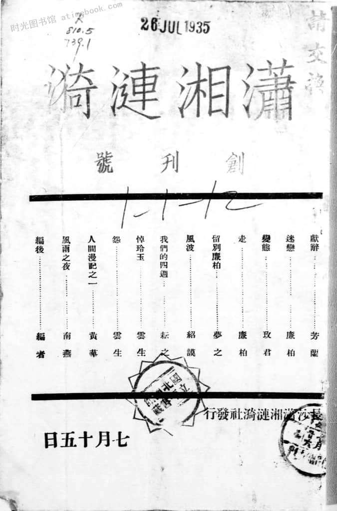 书籍名称:《潇湘涟漪》(长沙)1935-1937年合集