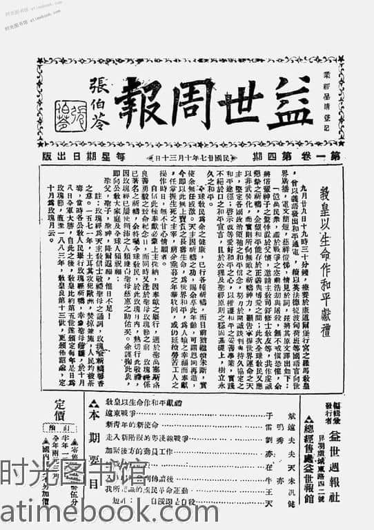 书籍名称:《益世周报》(重庆)1938-1939年合集