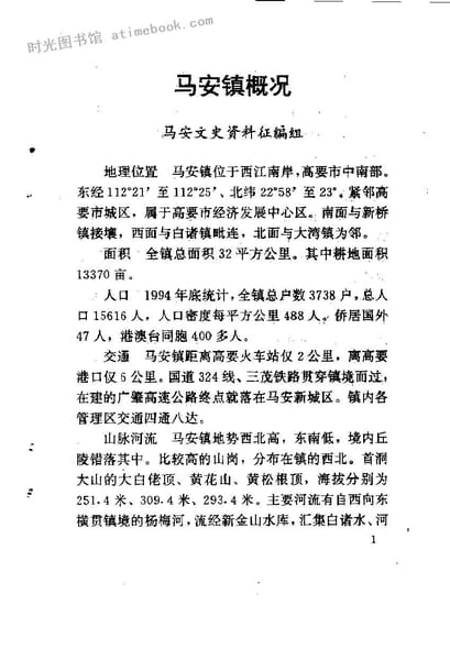 | 网盘路径:/时光图书馆珍藏系列/书籍文件/老图书/《高要文史_第13辑_马安镇专辑》电子版合集.db | ||