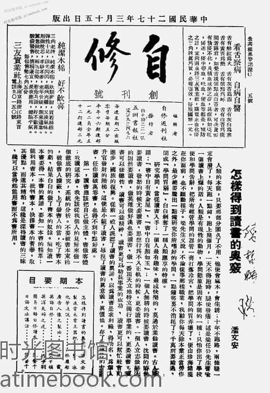 网盘路径:/时光图书馆珍藏系列/书籍文件/老杂志、老期刊/民国期刊/上海/《自修》(上海)1938-1942年合集.db