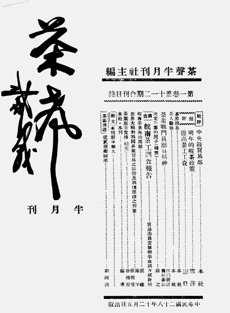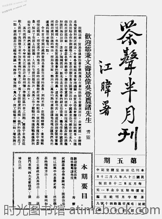 网盘路径:/时光图书馆珍藏系列/书籍文件/老杂志、老期刊/民国期刊/安徽/《茶声半月刊》(屯溪(安徽))1939-1940年合集.db