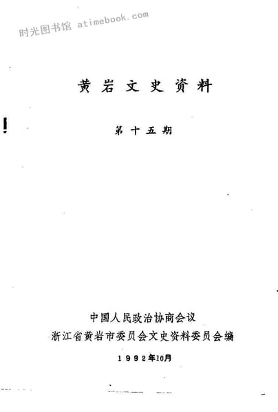| 网盘路径:/时光图书馆珍藏系列/书籍文件/老图书/《黄岩文史资料_第15期》电子版合集.db | ||