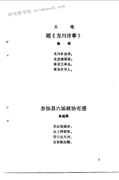 文件下载 名称:《龙川诗草_第3集》电子版合集 关键词:龙川,诗词, 出版地区:江苏省龙川县 1985年7月 文件大小:3.47 MB 原始格式:db数据库 导出格式:png 下载方式:百度网盘、夸克网盘、阿里云盘、123云盘 网盘路径:/时光图书馆珍藏系列/书籍文件/老图书/《龙川诗草_第3集》电子版合集.db 提示:也支持在线观看,安装阅读器即可,无需额外下载书籍文件。 下载地址: ★阅读器★ 百度网盘 阿里云盘 123云盘 夸克网盘 内容截图:(图片有压缩,使用阅读器观看更清晰) 书籍获取:书籍合集 喜欢 (0)