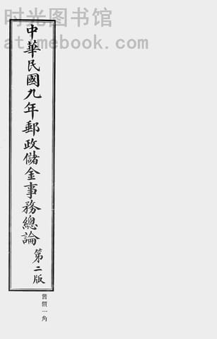 | 网盘路径:/时光图书馆珍藏系列/书籍文件/老图书/《中华民国九年邮政储金事务总论:第二版》电子版合集.db | ||