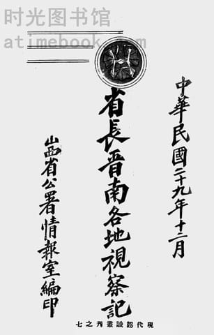 | 网盘路径:/时光图书馆珍藏系列/书籍文件/老图书/《中华民国二十九年十二月_省长晋南各地视察记》电子版合集.db | ||