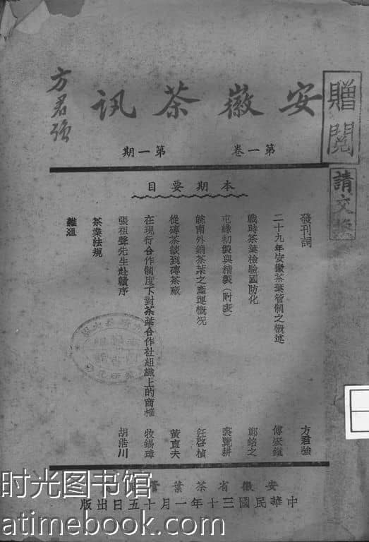 网盘路径:/时光图书馆珍藏系列/书籍文件/老杂志、老期刊/民国期刊/安徽/《安徽茶讯》(屯溪)1941-1941年合集.db