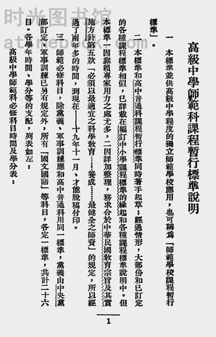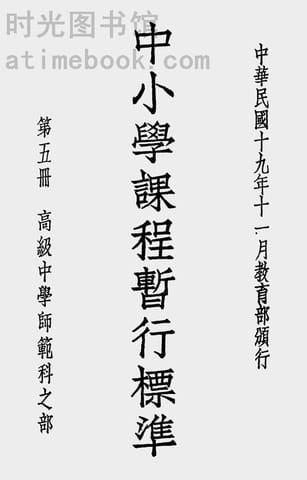 | 网盘路径:/时光图书馆珍藏系列/书籍文件/老图书/《中小学课程暂行标准_第5册(高级中学师范科之部)》电子版合集.db | ||