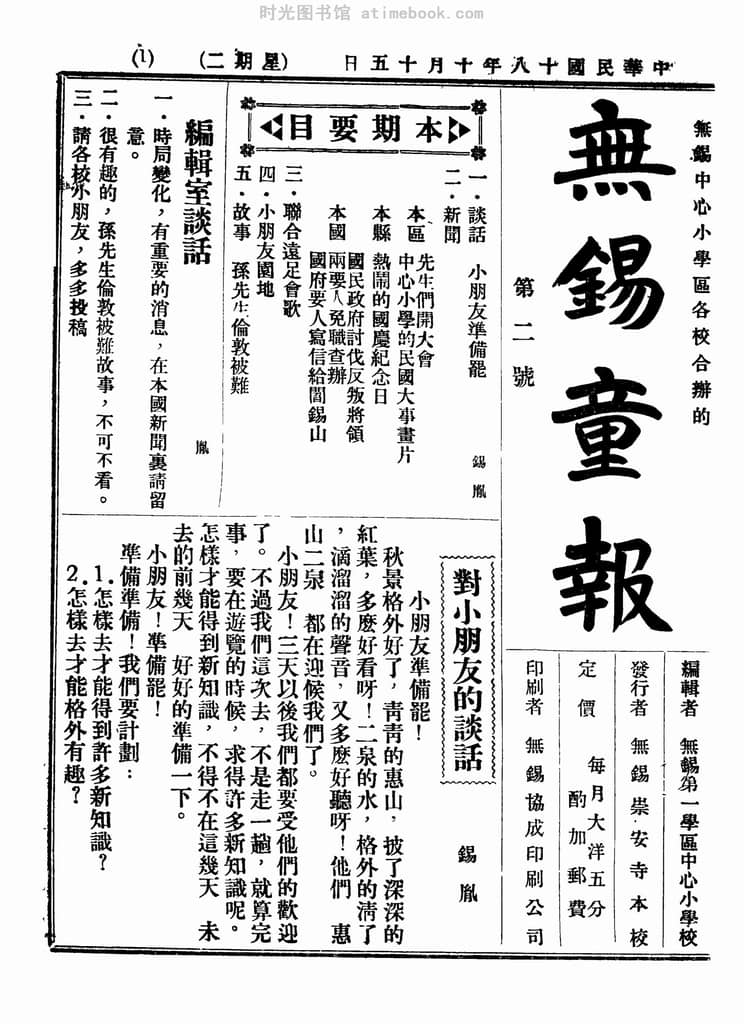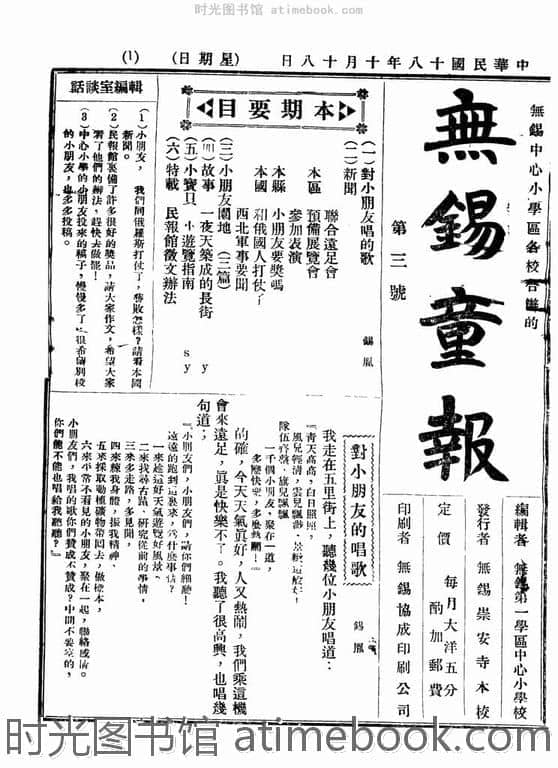 网盘路径:/时光图书馆珍藏系列/书籍文件/老报纸/江苏/《无锡童报》(无锡)1929-1930年合集.db