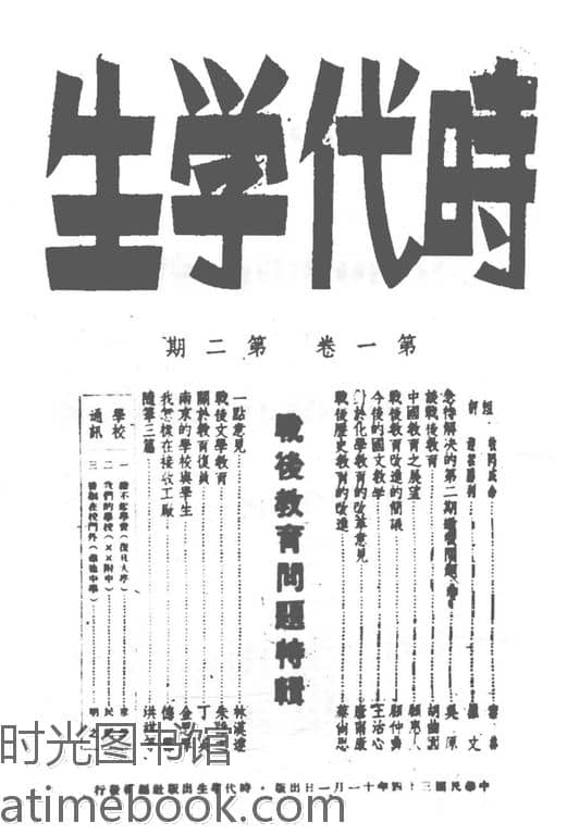 网盘路径:/时光图书馆珍藏系列/书籍文件/老杂志、老期刊/民国期刊/上海/《时代学生》(上海)1945-1946年合集.db