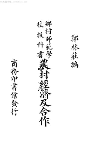 | 网盘路径:/时光图书馆珍藏系列/书籍文件/老图书/《乡村师范学校教科书:农村经济及合作》电子版合集.db | ||