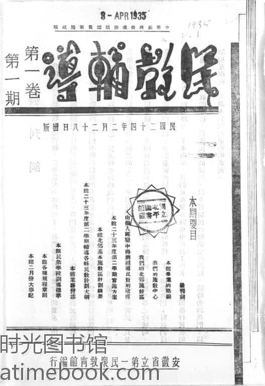 书籍名称:《民教辅导》(安庆)1935-1937年合集