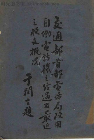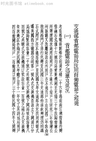 | 网盘路径:/时光图书馆珍藏系列/书籍文件/老图书/《交通部首都电话局改用自动电话机之经过及最近收支概况》电子版合集.db | ||