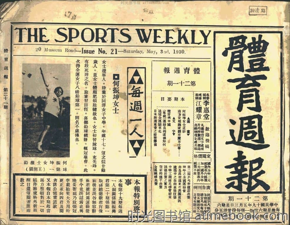 网盘路径:/时光图书馆珍藏系列/书籍文件/老报纸/《体育周报》1930-1930年合集.db