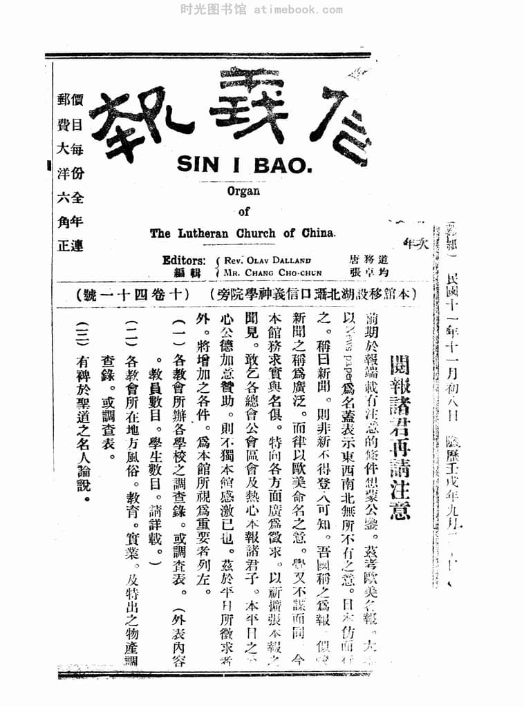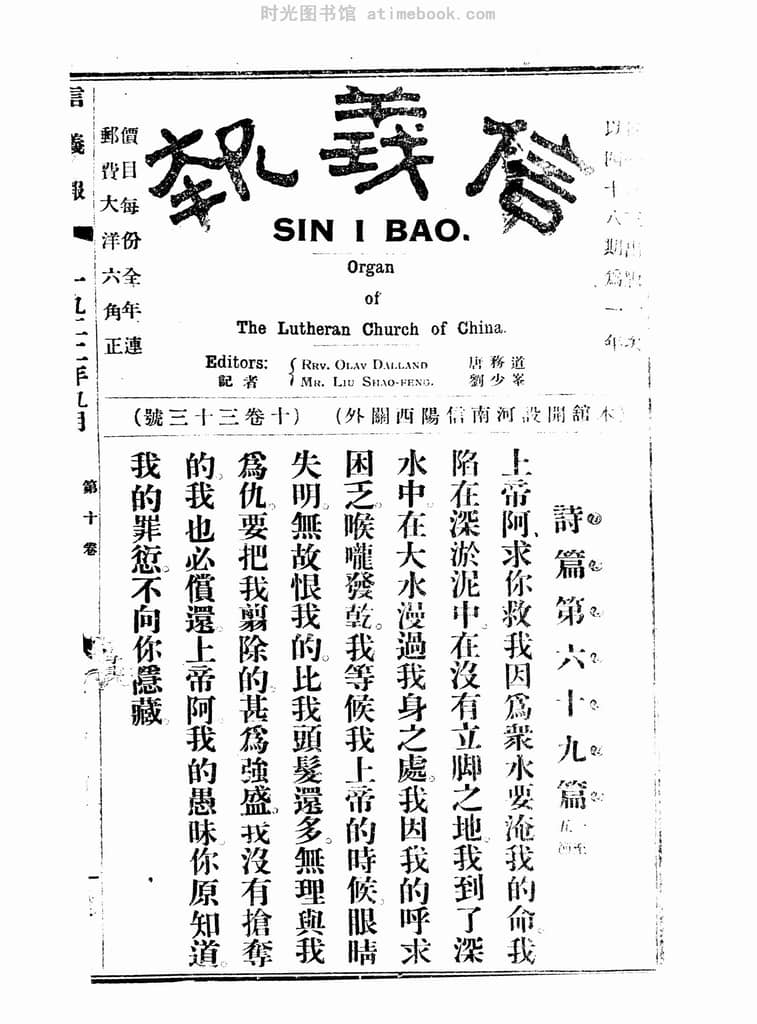 书籍名称:《信义报》(湖北)1922-1926年合集