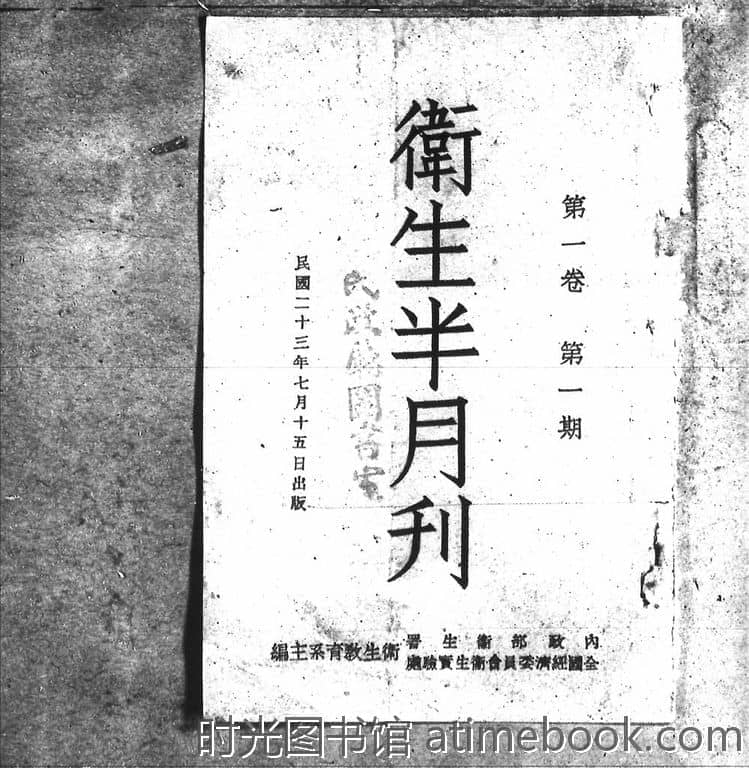 书籍名称:《卫生半月刊》(南京)1934-1935年合集