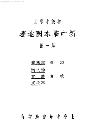 | 网盘路径:/时光图书馆珍藏系列/书籍文件/老图书/《初级中学用新中华本国地理_第1册》电子版合集.db | ||