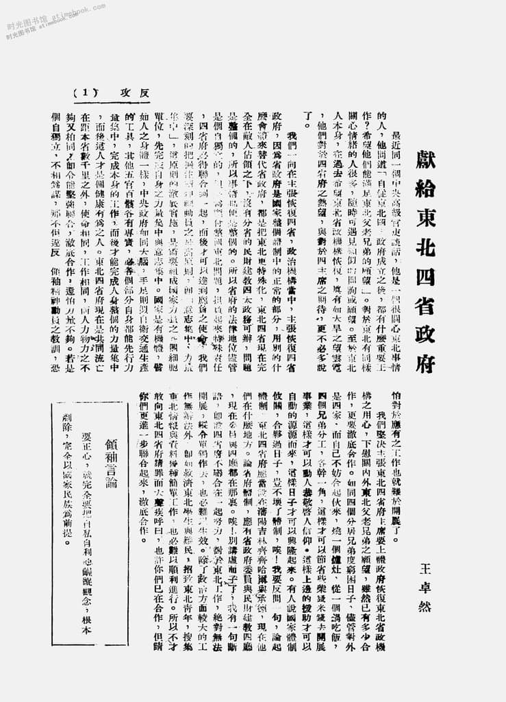 网盘路径:/时光图书馆珍藏系列/书籍文件/老杂志、老期刊/民国期刊/湖北/《反攻》(武昌)1941-1942年合集.db