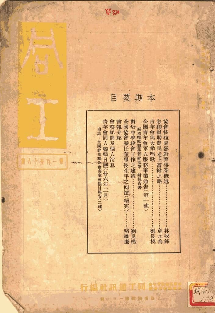 网盘路径:/时光图书馆珍藏系列/书籍文件/老杂志、老期刊/民国期刊/上海/《同工》(上海)1937-1941年合集.db