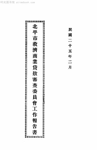 | 网盘路径:/时光图书馆珍藏系列/书籍文件/老图书/《北平市救济商业贷款审查委员会工作报告书》电子版合集.db | ||
