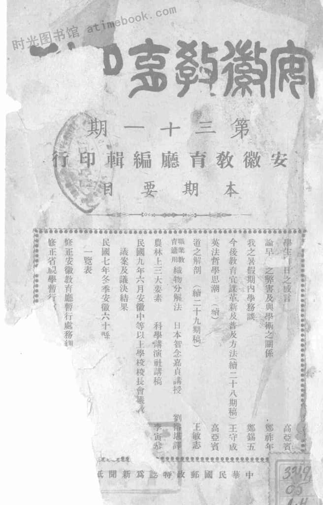 书籍名称:《安徽教育月刊》(安庆)1920-1922年合集