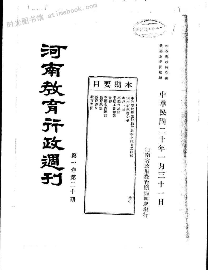 网盘路径:/时光图书馆珍藏系列/书籍文件/老杂志、老期刊/民国期刊/河南/《河南教育周刊》(河南)1930-1931年合集.db