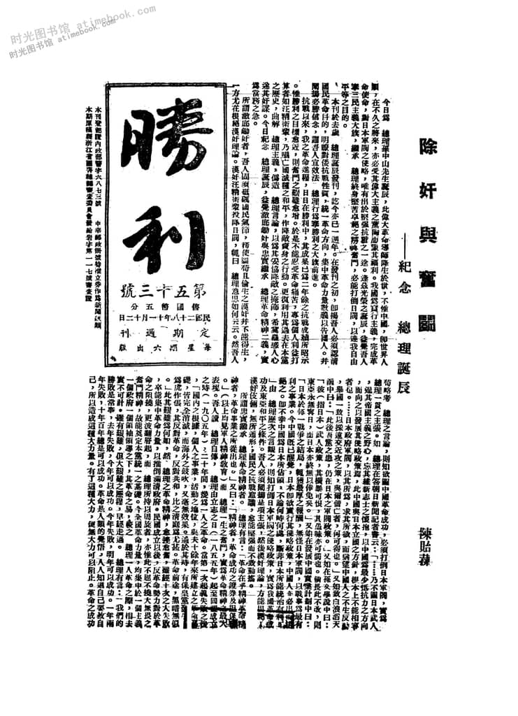 网盘路径:/时光图书馆珍藏系列/书籍文件/老杂志、老期刊/民国期刊/浙江/《胜利周刊》(杭州)1929-1941年合集.db