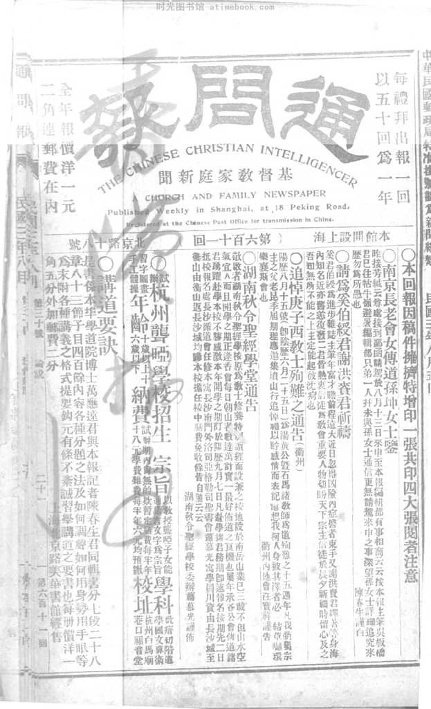 书籍名称:《通问报:耶稣教家庭新闻》(上海)1914-1914年合集