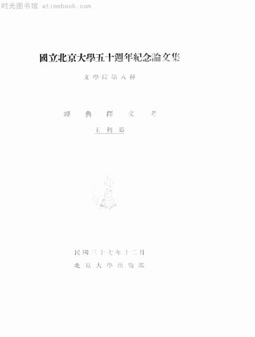 | 网盘路径:/时光图书馆珍藏系列/书籍文件/老图书/《国立北京大学五十周年纪念论文集:经典释文考》电子版合集.db | ||