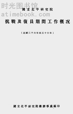 | 网盘路径:/时光图书馆珍藏系列/书籍文件/老图书/《国立北平研究院抗战及复员期间工作概况(民国二十六年至三十六年)》电子版合集.db | ||