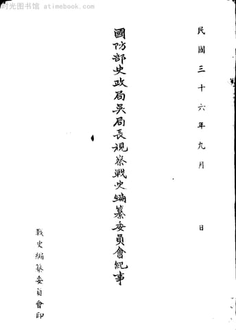 | 网盘路径:/时光图书馆珍藏系列/书籍文件/老图书/《国防部史政局吴局长视察战史编纂委员会纪事》电子版合集.db | ||