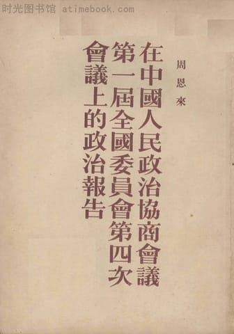 | 网盘路径:/时光图书馆珍藏系列/书籍文件/老图书/《在中国人民政治协商会议第一届全国委员会第四次全体会议上的政治报告》电子版合集.db | ||