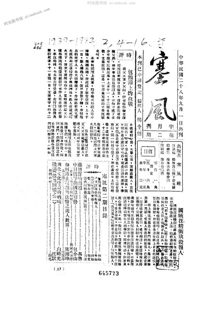 书籍名称:《塞风》(陕西省榆林市)1939-1942年合集