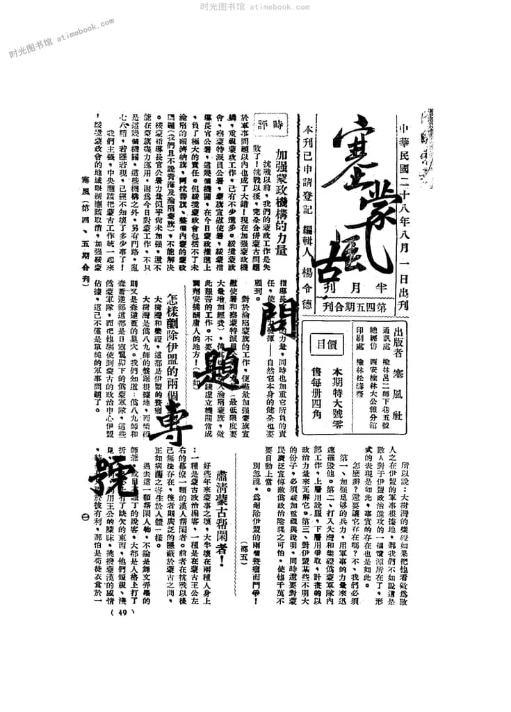 网盘路径:/时光图书馆珍藏系列/书籍文件/老杂志、老期刊/民国期刊/陕西/《塞风》(陕西省榆林市)1939-1942年合集.db