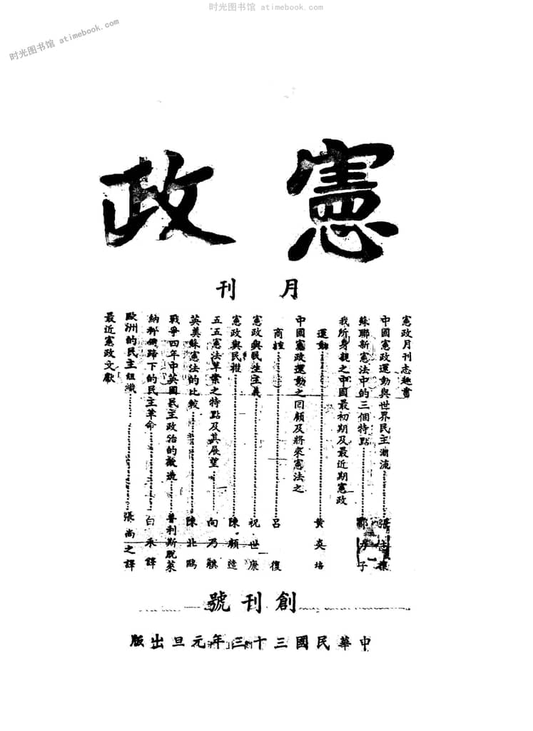 书籍名称:《宪政月刊》(重庆)1944-1945年合集