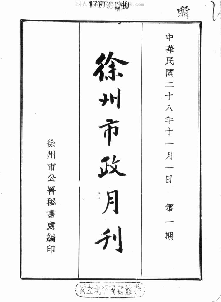 网盘路径:/时光图书馆珍藏系列/书籍文件/老杂志、老期刊/民国期刊/江苏/《徐州市政月刊》(江苏徐州)1939-1941年合集.db
