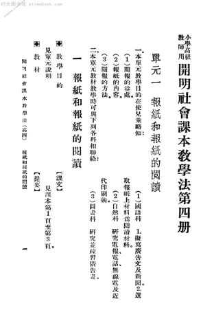 | 网盘路径:/时光图书馆珍藏系列/书籍文件/老图书/《小学高级教师用开明社会课本教学法_第4册》电子版合集.db | ||
