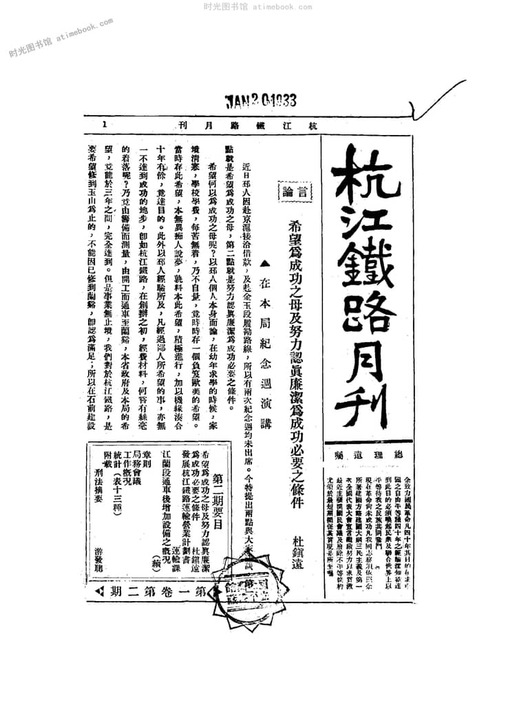 网盘路径:/时光图书馆珍藏系列/书籍文件/老杂志、老期刊/民国期刊/浙江/《杭江铁路月刊》(杭州)1932-1934年合集.db