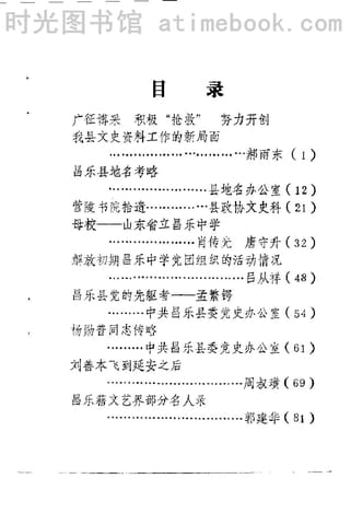 | 网盘路径:/时光图书馆珍藏系列/书籍文件/老图书/《山东省昌乐县文史资料选辑_第3辑》电子版合集.db | ||
