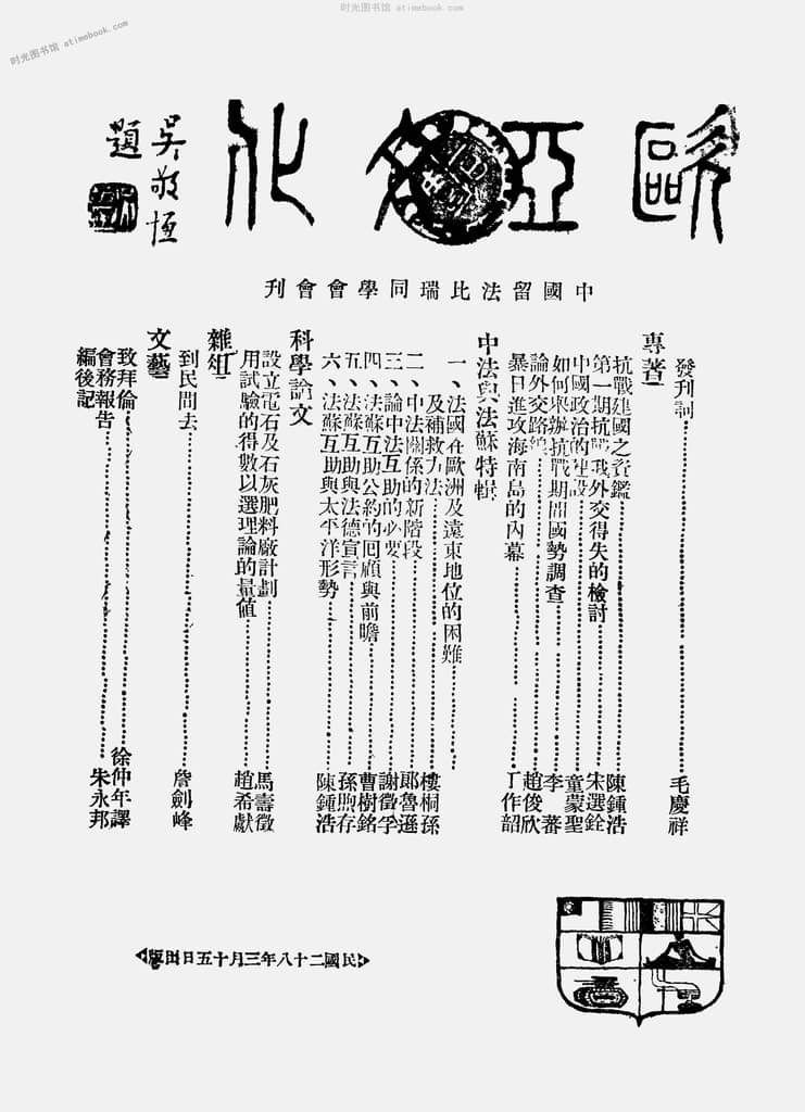 网盘路径:/时光图书馆珍藏系列/书籍文件/老杂志、老期刊/民国期刊/四川/《欧亚文化:中国留法比瑞同学会会刊》(重庆)1939-1941年合集.db