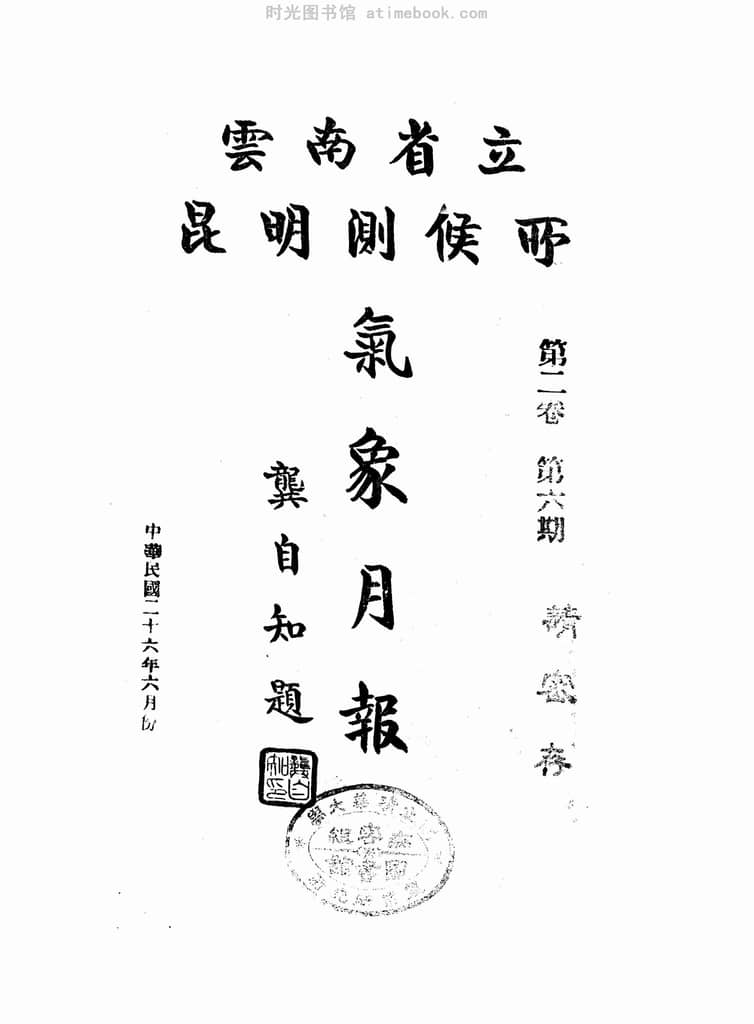 网盘路径:/时光图书馆珍藏系列/书籍文件/老报纸/云南/《气象月报》(昆明)1937-1939年合集.db