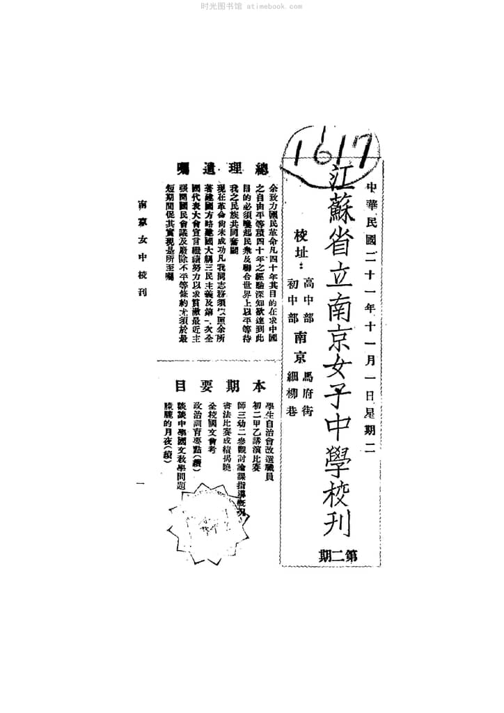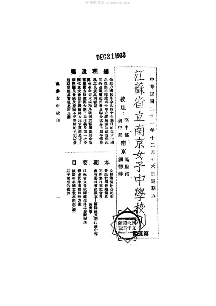 网盘路径:/时光图书馆珍藏系列/书籍文件/老杂志、老期刊/民国期刊/南京/《江苏省立南京女子中学校刊》1931-1933年合集.db