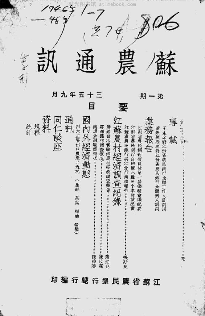 网盘路径:/时光图书馆珍藏系列/书籍文件/老杂志、老期刊/民国期刊/江苏/《苏农通讯》(江苏镇江)1946-1948年合集.db